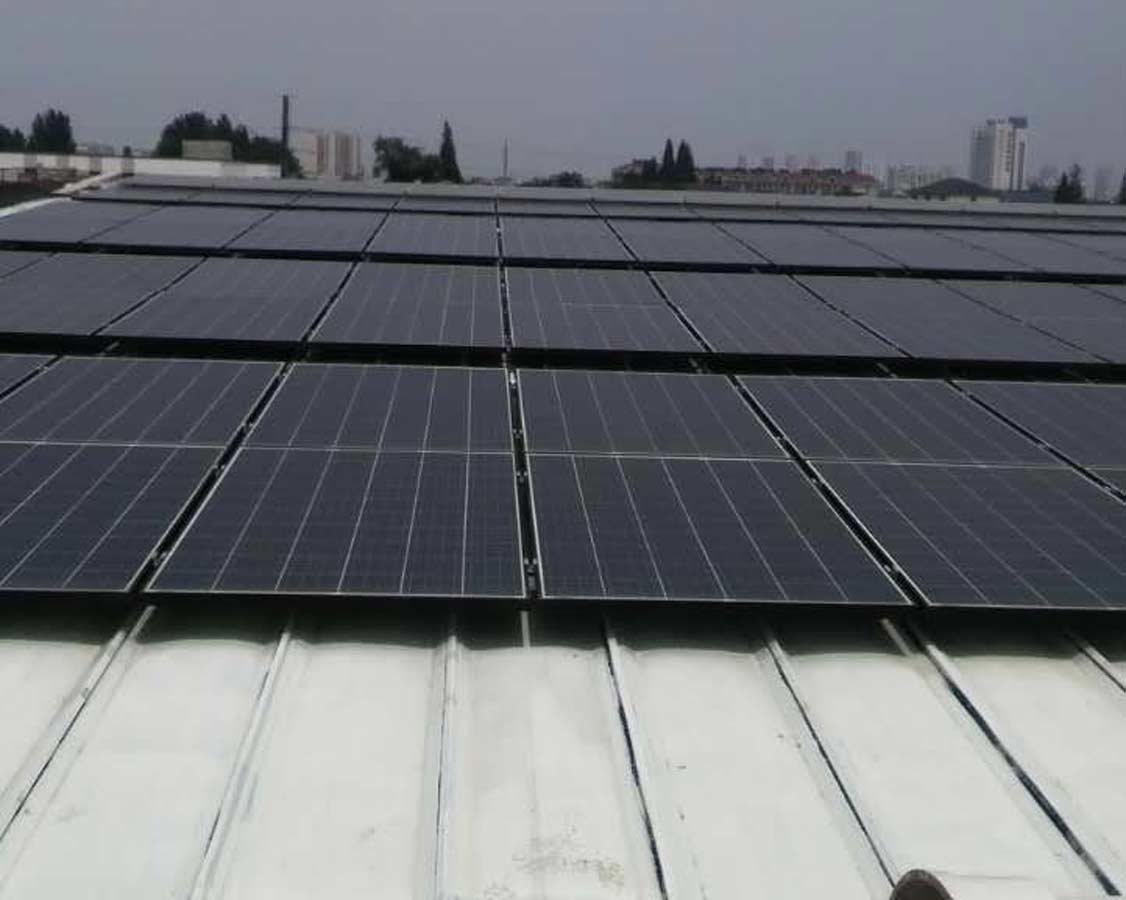 .本工程项目系统共铺设太阳能组件1870块,在江苏骏成电子有限乐动·官方站官网-乐动(中国)厂房屋面不知太阳能电池板,光伏组件随屋面平铺安装,经计算采用22一串的电气连接方式,组串在屋面就近接入相应逆变器,再接入相应交流汇流箱,本工程共使用8台60kWp组串逆变器。